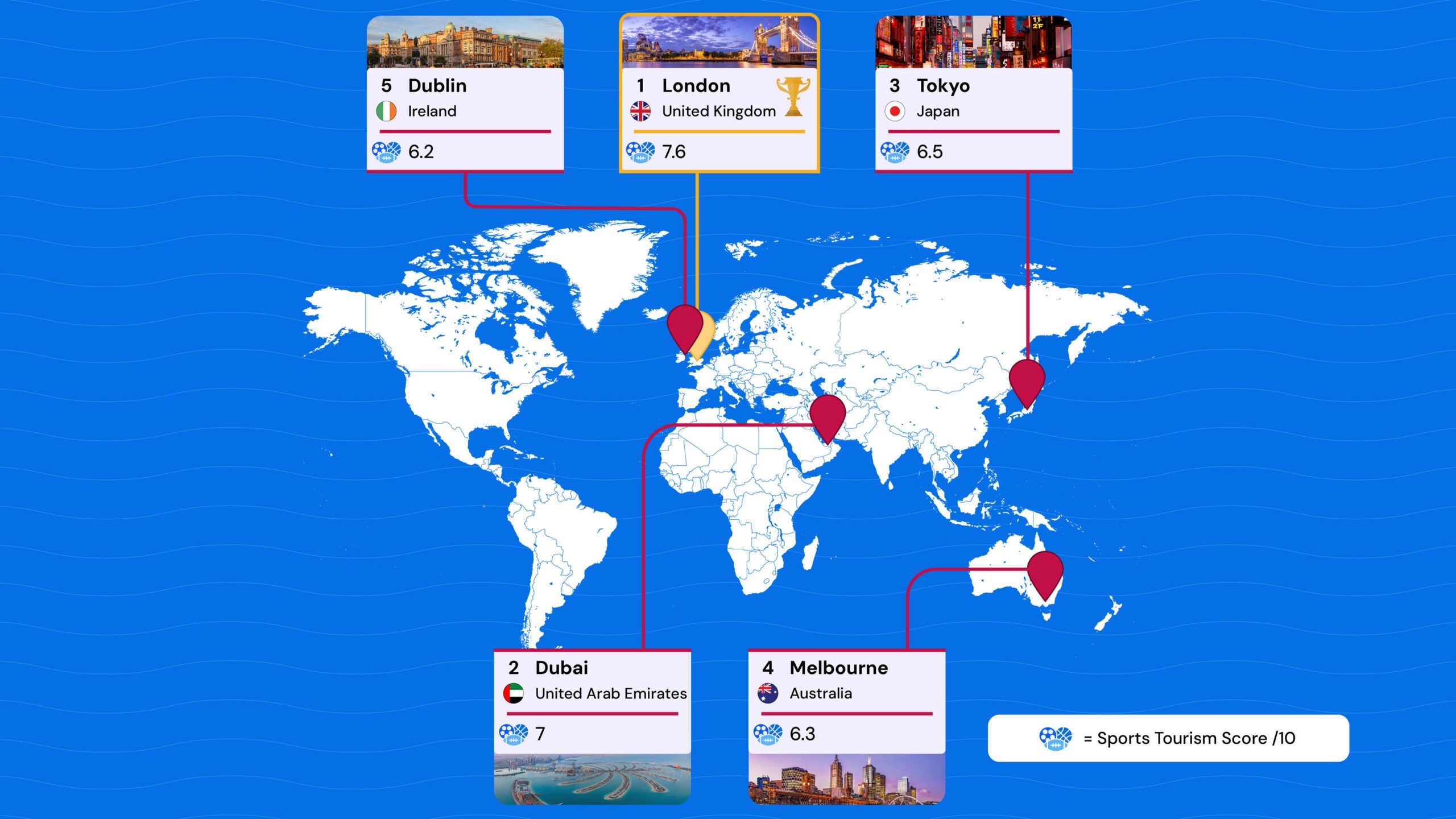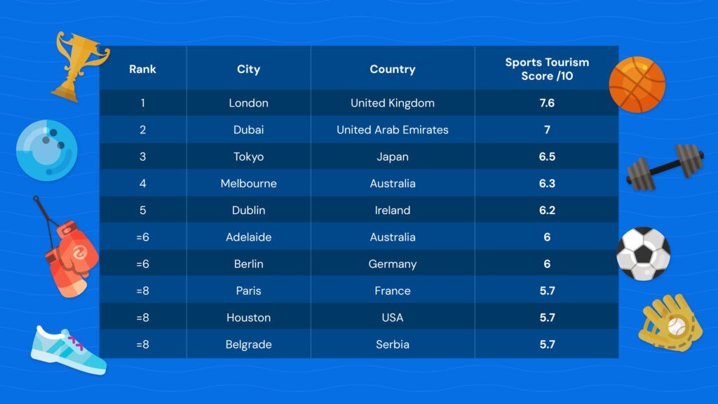 Dubai’s second-place finish reflects the rapid rise of newer sports destinations, particularly in the Gulf.